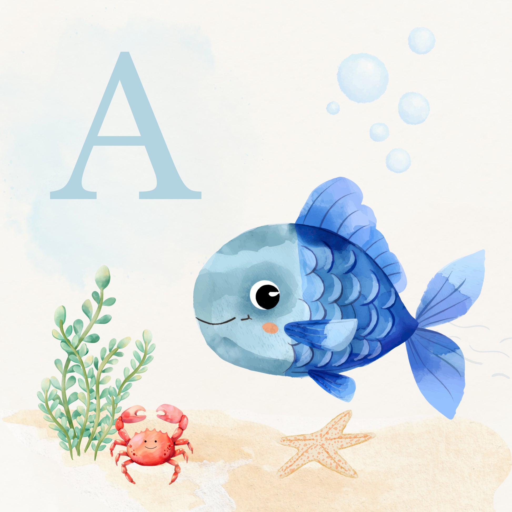 Bring a splash of coastal charm to your walls with our Blue Fish Alphabet Prints. Each letter is paired with a whimsical tropical fish and bold blue lettering—perfect for classic nautical nurseries, beach-themed playrooms, or personalized ocean-inspired decor.